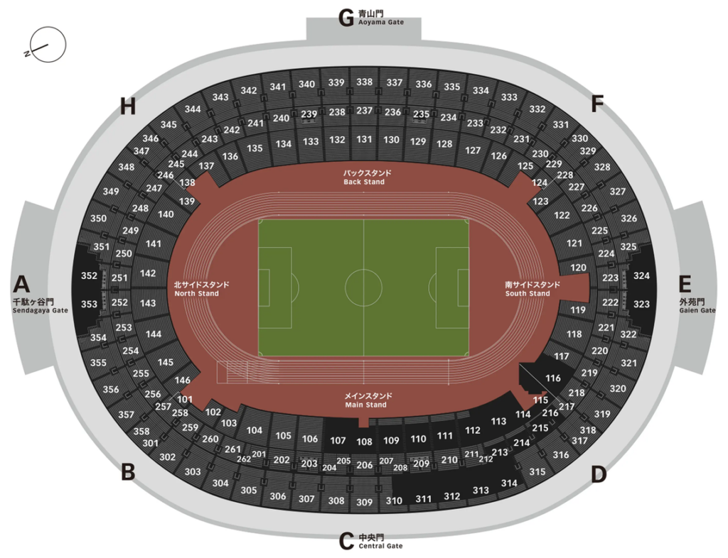 「チケットが届いたけど、この席ってどうなの?」とドキドキしている方へ。国立競技場 の座席は大きく分けて「アリーナ席」と「スタンド席(1層・2層・3層)」があります。そ れぞれの見え方や特徴をまとめました。